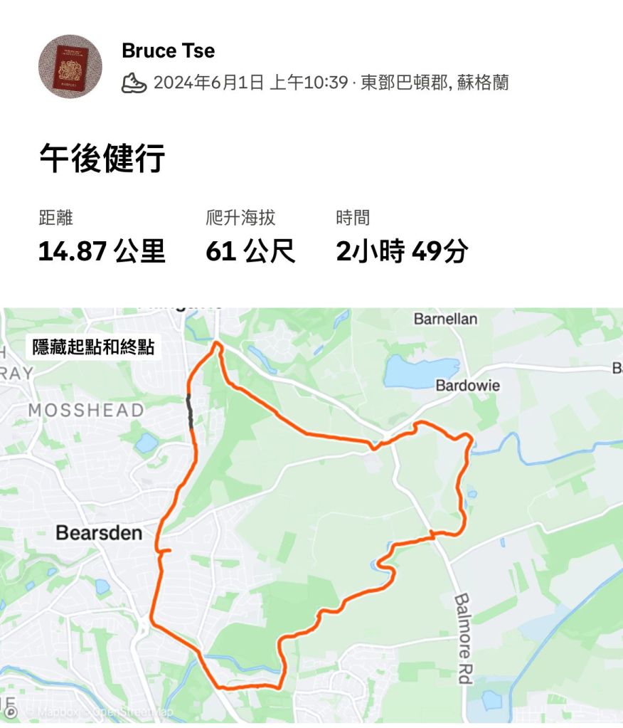 行程來到尾聲,經過蘇超傳統勁旅格拉斯哥流浪的訓練場,再接上Milngavie Road,理論上要往北走,行去town centre作結,但我住Bearsden,在Milngavie以南,當然頭也不回直接回家了。
