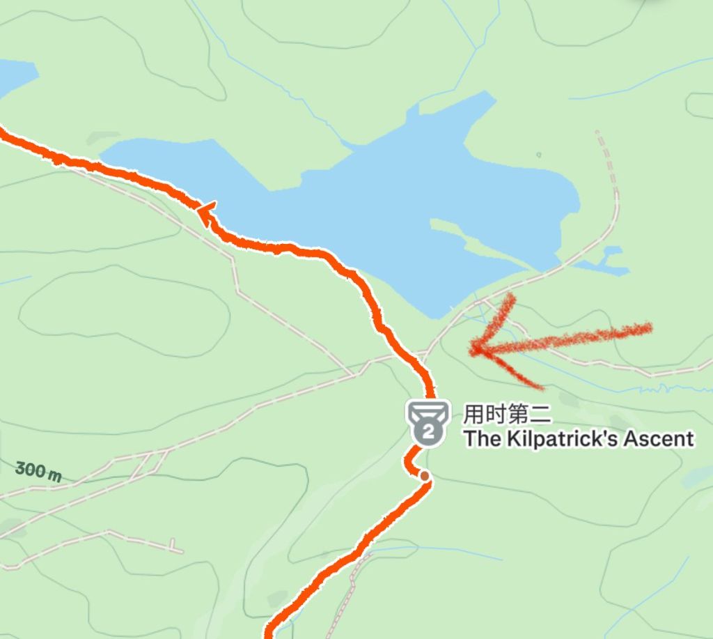 前段跟out-and-back路線一樣,沿寛闊的路徑上山,在接近Loch Humphrey前轉左,接上泥路: