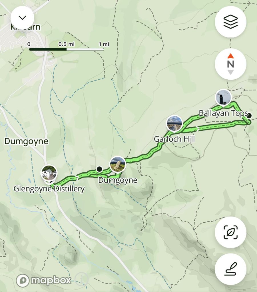 之前介紹過的Campsie Fells Circular,途中會經過Dumgoyne,也是全程最具挑戰性的山峰,但你要先兜一個圈,最後才打大佬: