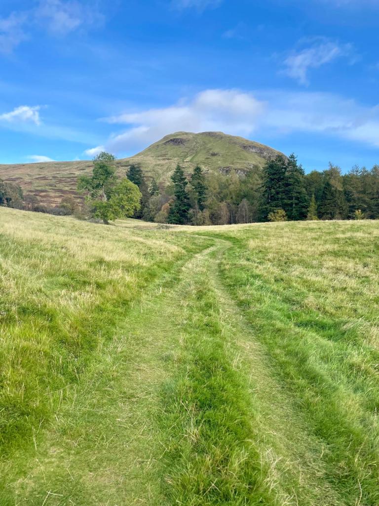 泊好車,走一小段回頭路,然後過對面馬路的Glengoyne Distillery,右邊有一幅大草地,中間有一條小徑: