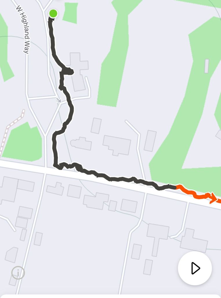 Circular在停車場外起步,走回頭路,大概20分鐘左右,有明顯分叉路,轉左,沿Greityhall Road緩緩上山:
