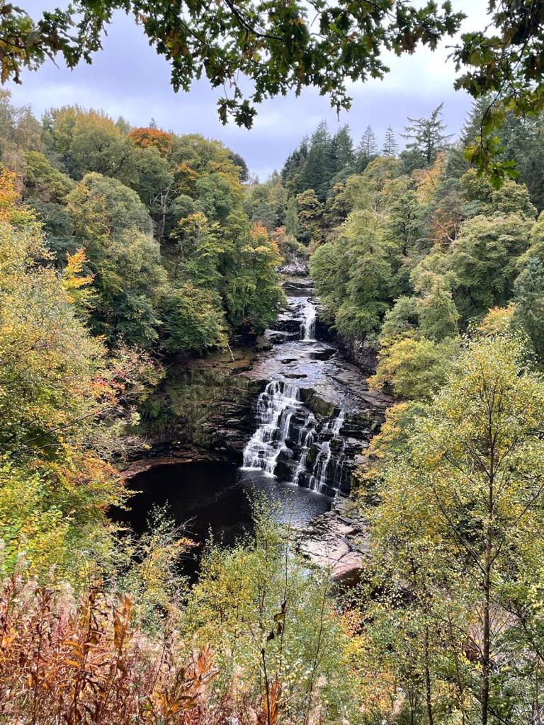 上游有四層瀑布(Falls of Clyde),是著名的風景區: