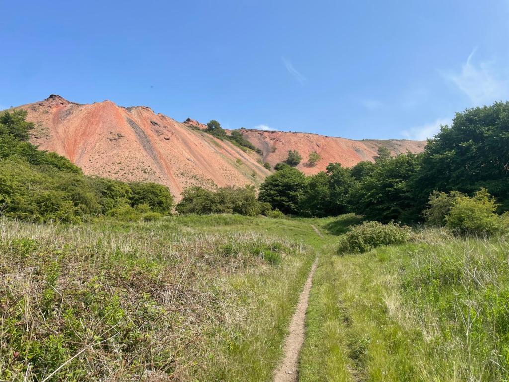 原來這座叫Greendykes Bing的「山」並不是山,而是一個礦渣堆田區,位於West Lothian,是昔日提煉油頁岩(Oil Shale)的遺址,由於提煉過程會產生大量礦渣,為節省成本,只能就地棄置,久而久之,便推積成山。